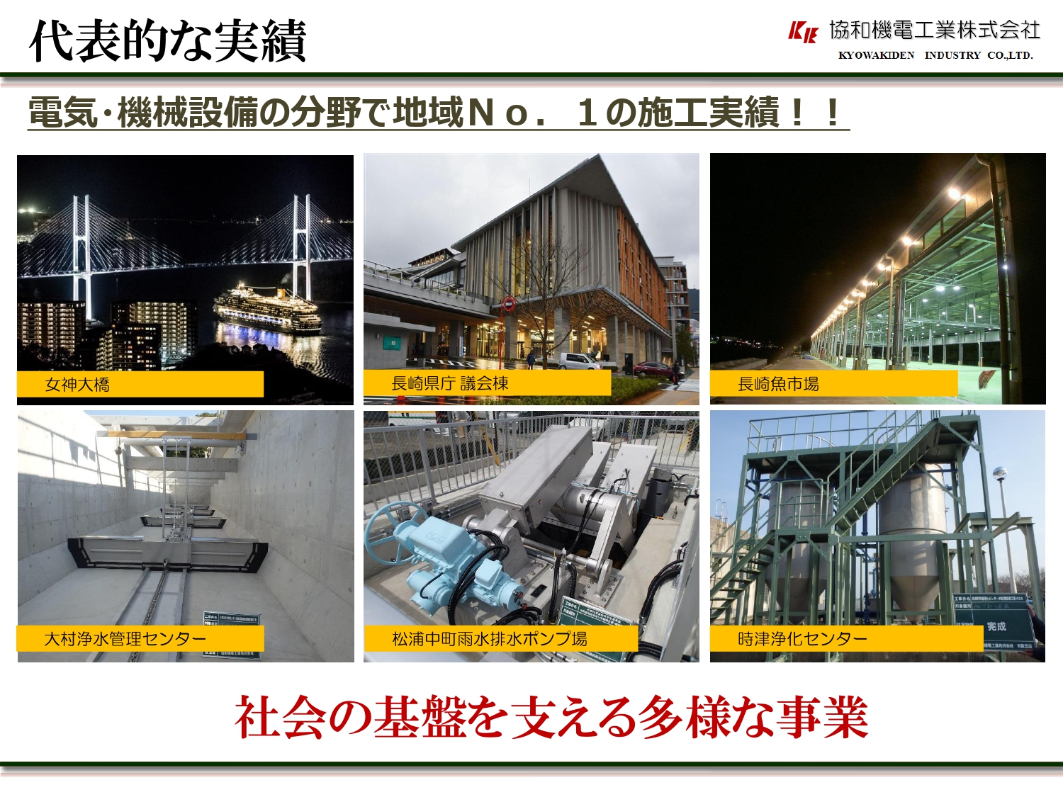 プラントエンジニアリング、設備工事の分野ですが、電気、機械の分野で長年長崎ナンバーワンの施工実績を収めております。